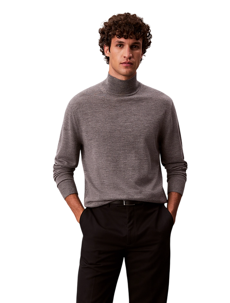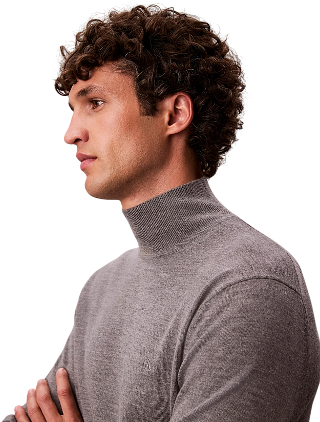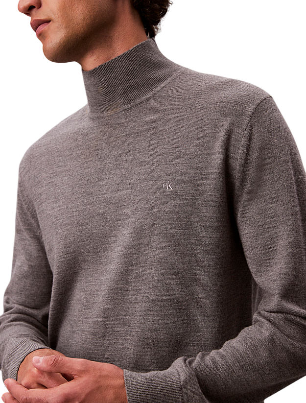 Ανδρικό Πουλόβερ Calvin Klein Ls Merino Mock Neck Swtr Medium Grey Htr LV04LE309G-P7E