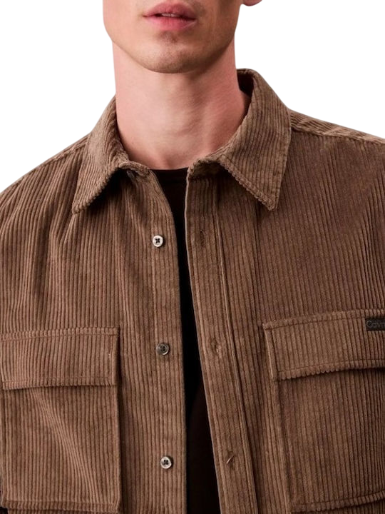 Ανδρικό Πουκάμισο Calvin Klein Ls Corduroy Pocket Relaxed Shirt Morel LV04RD106G-PDK