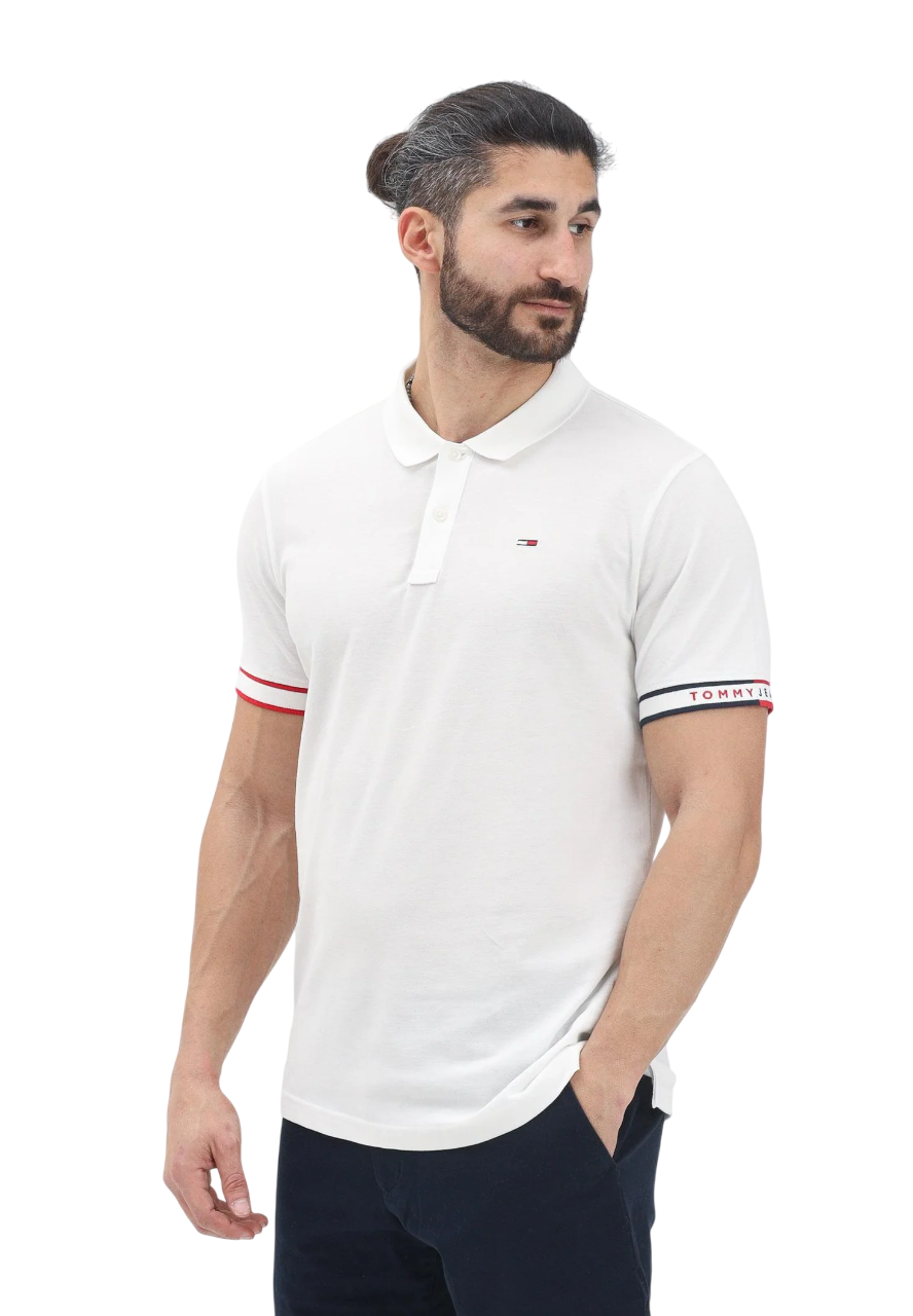 Ανδρικό Polo Tommy Jeans Slim Flag Cuff Polo Ext Ecru DM0DM21306-YBL
