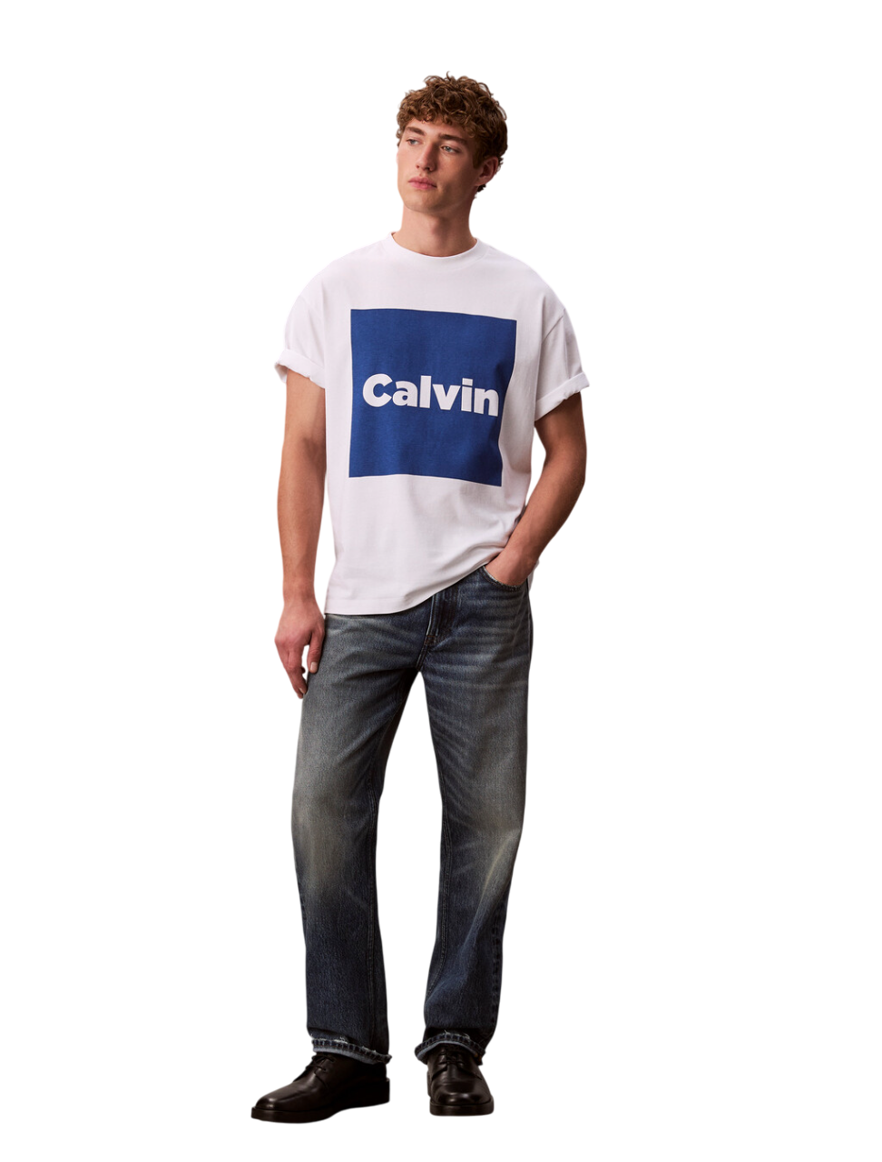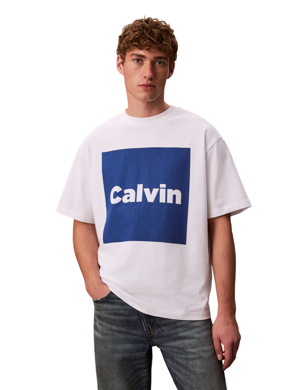 Ανδρικό T-Shirt Calvin Klein Ss 16s Io Calvin Box Graphic Tee Brilliant White LV04RD813G-YAA