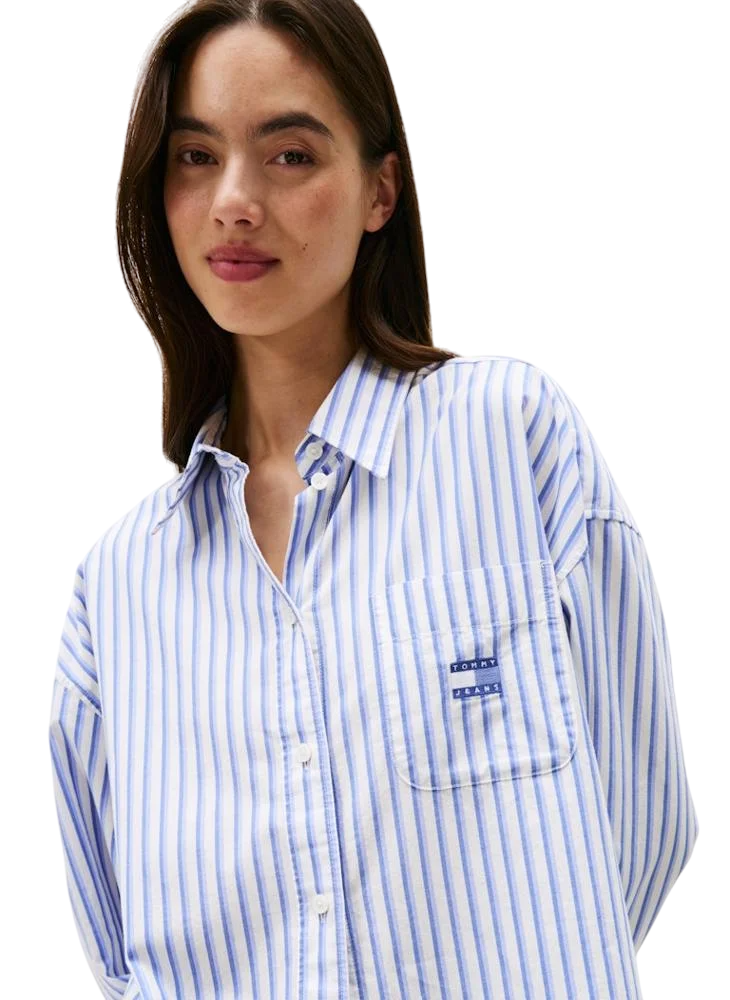 Γυναικείο Πουκάμισο Tommy Jeans TJW Ovs Badge Stripe Shirt Vintage Iris DW0DW21450-C5Z
