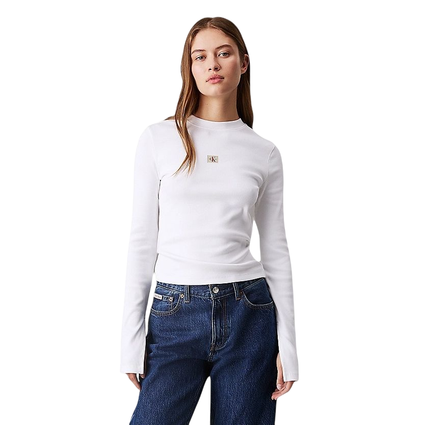 Γυναικεία Μπλούζα Calvin Klein Woven Label Rib Ls Top Bright White J20J224760-YAF